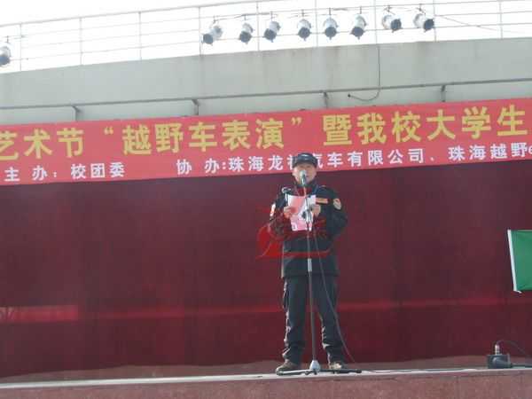 12月5日龍神公司與廣東科學技術職業學院聯合“越野e族”舉辦“第十七屆大學生文化藝術節 越野車文化交流表演暨大學生就業創業基地建設啟動儀式在廣科院校園隆重召開。此次大學生文化藝術節由廣科院校團委主辦,龍神公司、越野e族協辦,出席此次活動的分別來自珠海,江門,中山,順德,澳門的越野e族朋友共八十多輛高級越野車參與;在緊張刺激的汽車轟鳴聲中拉開了序幕。