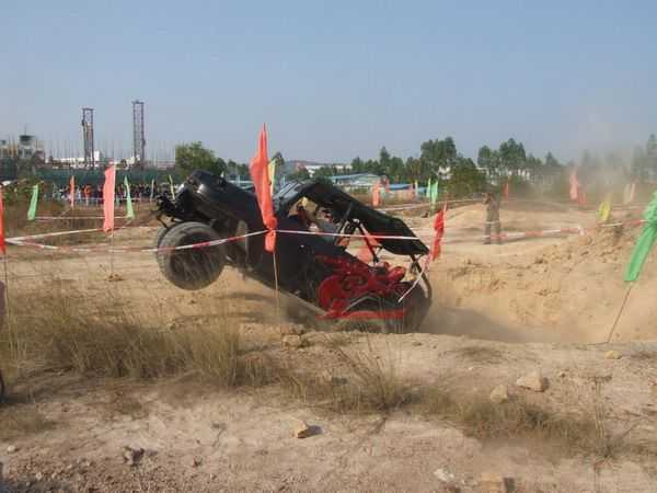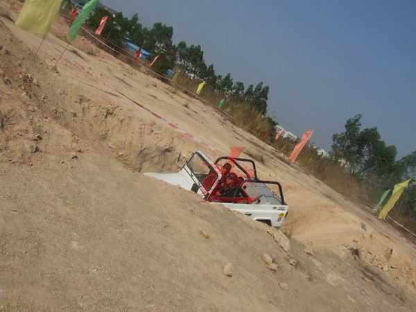 最激動人心的越野車表演在下午正式開始,所有車輛滿載著喜悅開向越野場所---廣科院后山,遠遠望去高底不平的小大山丘,讓人生畏。比賽開始時每個車主都直沖向目的地在山丘中起浮不斷,時而下沉時而沖上山丘,緊張、刺激、驚險、轟鳴聲、尖叫聲。最后五名車主分別獲得了最佳勇敢獎;最佳震撼獎;最佳車手風采獎;最佳改裝創意獎;最佳內飾獎。