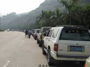 越野e族的車友們排成長龍出發了