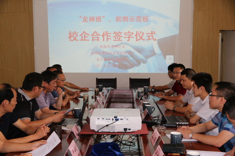 珠海龍神與安寧職中“Longco-ABP”校企合作項目協議簽訂 2015-08-13 14978 2015年7月31日,珠海市龍神有限公司、云南昆明松騁汽車設備有限公司及安寧市職業高級中學各方代表,在安寧市高級職業中學就“Longco-ABP”校企合作項目舉行簽約儀式。