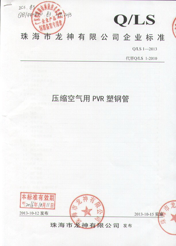 珠海市龍神有限公司企業執行標準