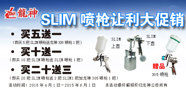 2014年2月份SLIM噴槍促銷方案 2014-02-14 11217 一、 主題“春雷。讓利行動”SLIM噴槍讓利大促銷二、 活動時間1、 起始時間:2014年02月15日至2014年4月15日2、 時長:二個月三、 活動內容(活動方案)1)買5把SLIM送 龍神305噴槍[編號3056001*]一把2)買10把SLIM送1把SLIM3)買20把SLIM送2把SLIM+送龍神305噴槍[編號3056001*]一把活動期間SLIM上下壺噴槍的贈送方式為:以多贈送原則(如:買6把上壺+4把下壺,贈送上壺。反之亦然,以此類推。)